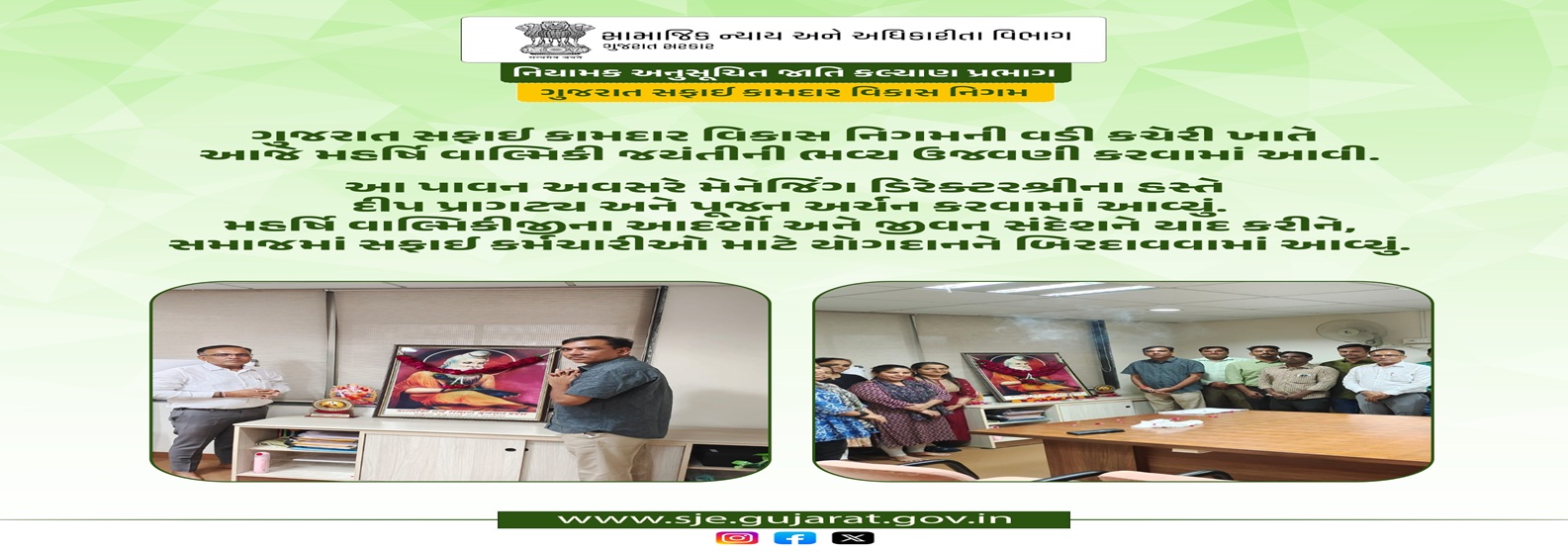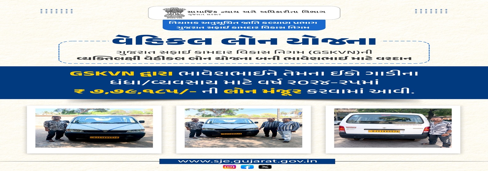 ગુજરાત સરકારે સમગ્ર દેશમાં સૌપ્રથમ વખત અસ્વચ્છ વ્યવસાયમાં રોકાયેલા સફાઇ કામદારોને અન્ય સ્વચ્છ વ્યવસાયો તરફ વાળવા માટે રાજય સ્તરે એક અભિયાન ચલાવી વિવિધ યોજનાઓ મારફતે સફાઇ કામદારો અને તેમના આશ્રિતોને આર્થિક રીતે પગભર કરી તેઓ સમાજમાં માનભર્યું સ્થાન મેળવી શકે તે હેતુથી મૂળ તા. ૧૫/૧૦/૧૯૯૪ થી...